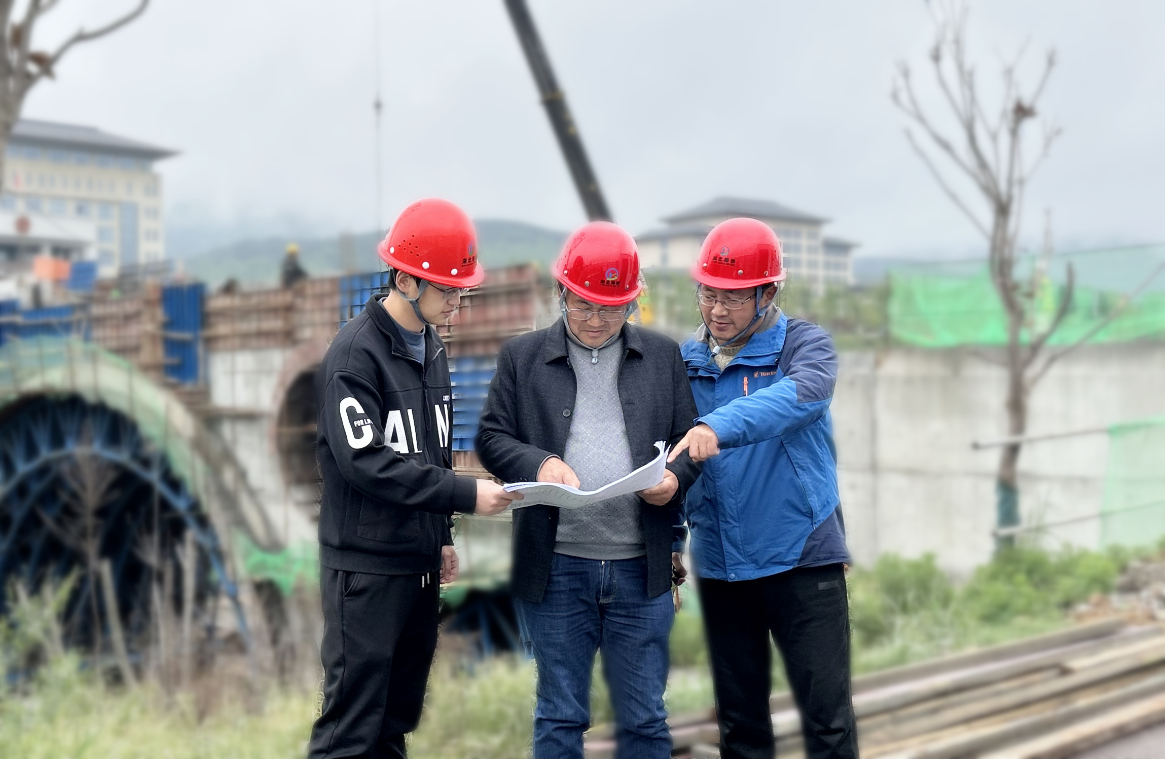 圖:堅守在項目一線的徐明浩(中)