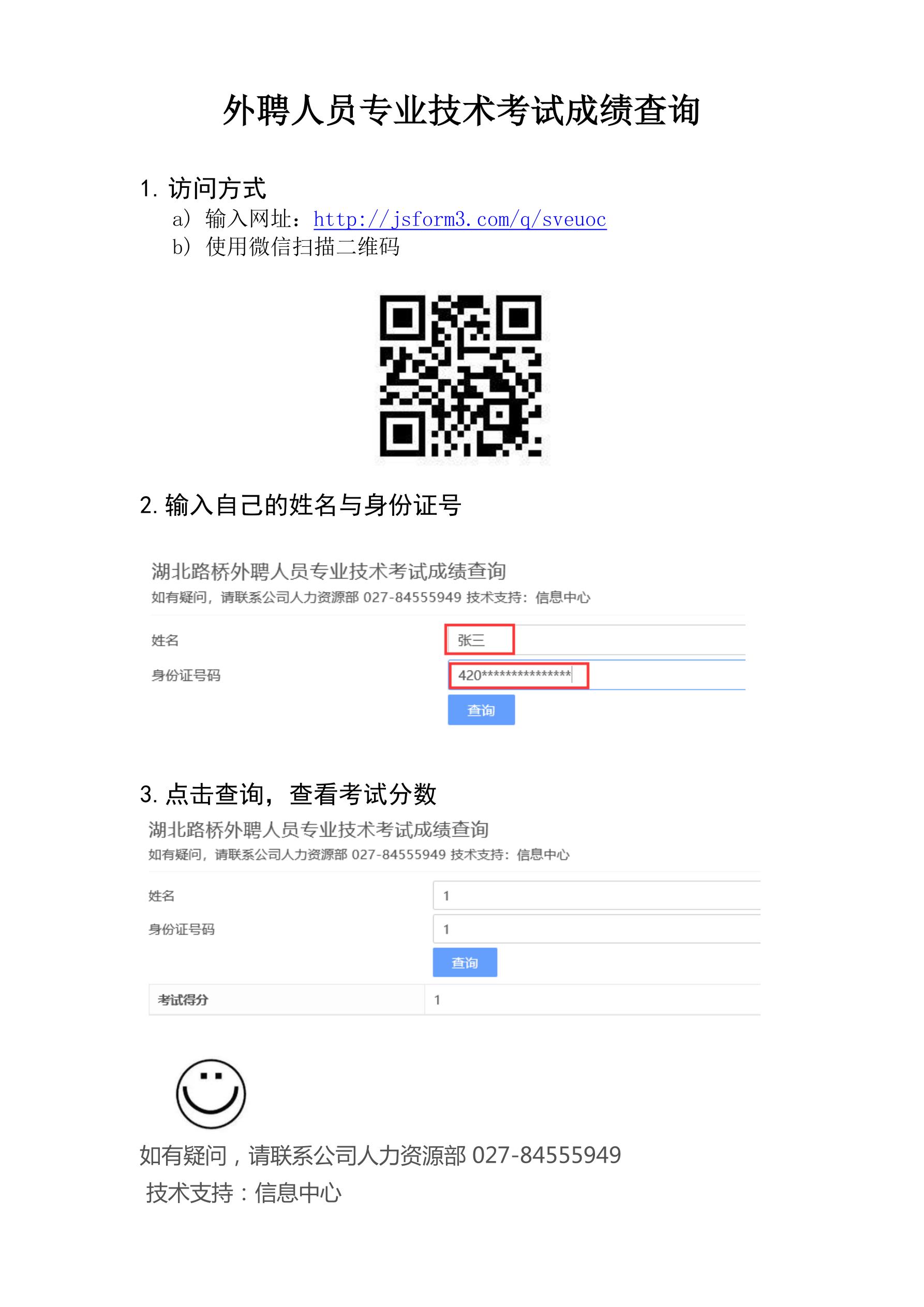 外聘人員專業技術考試成績查詢