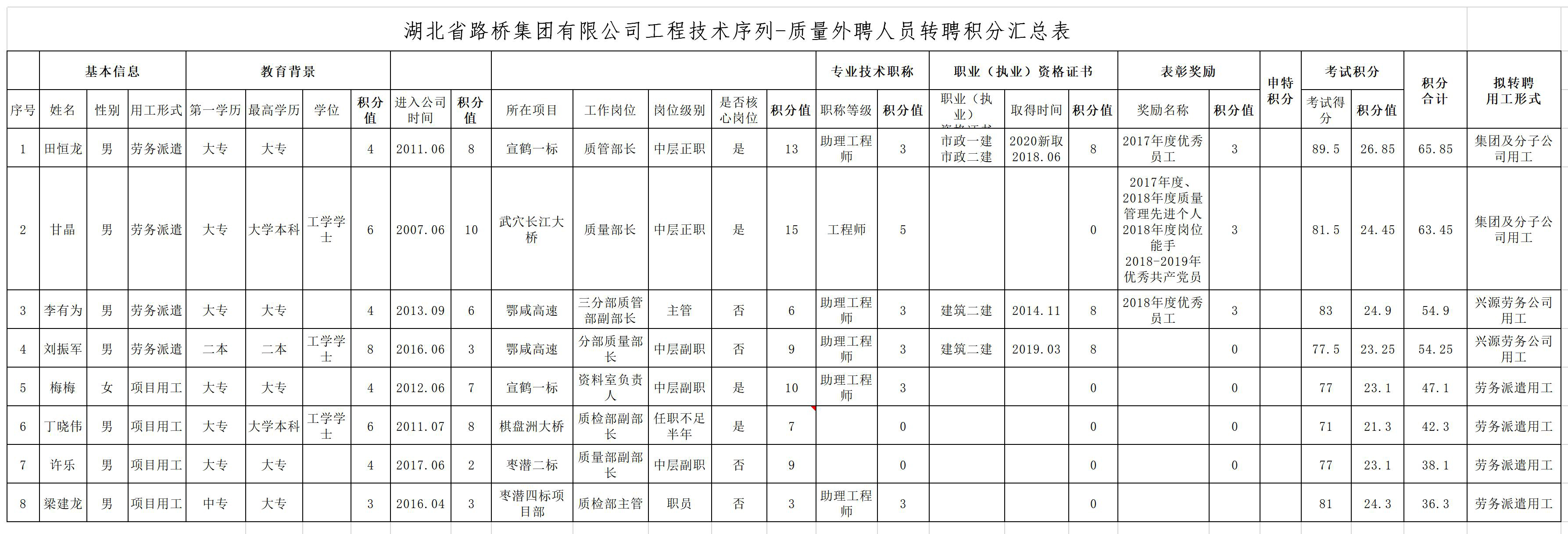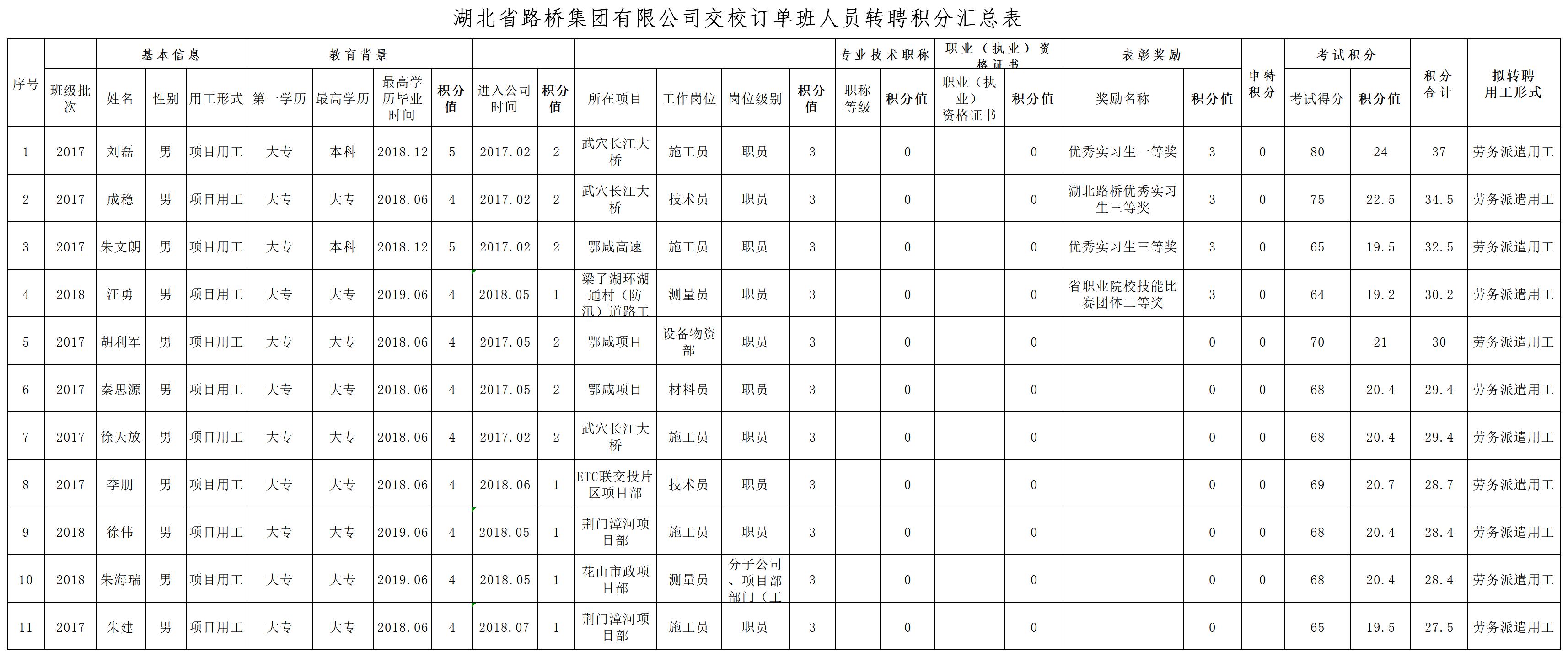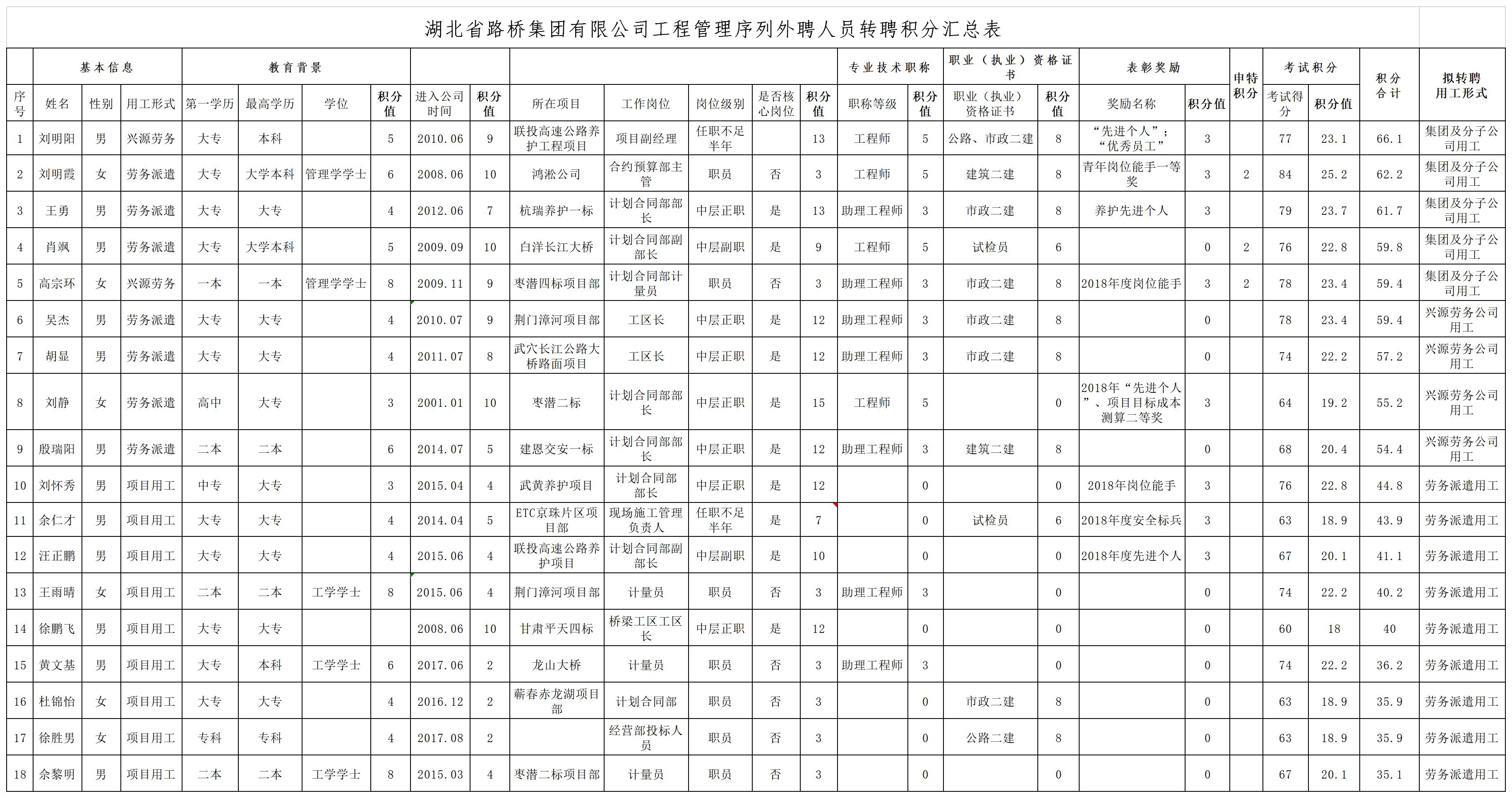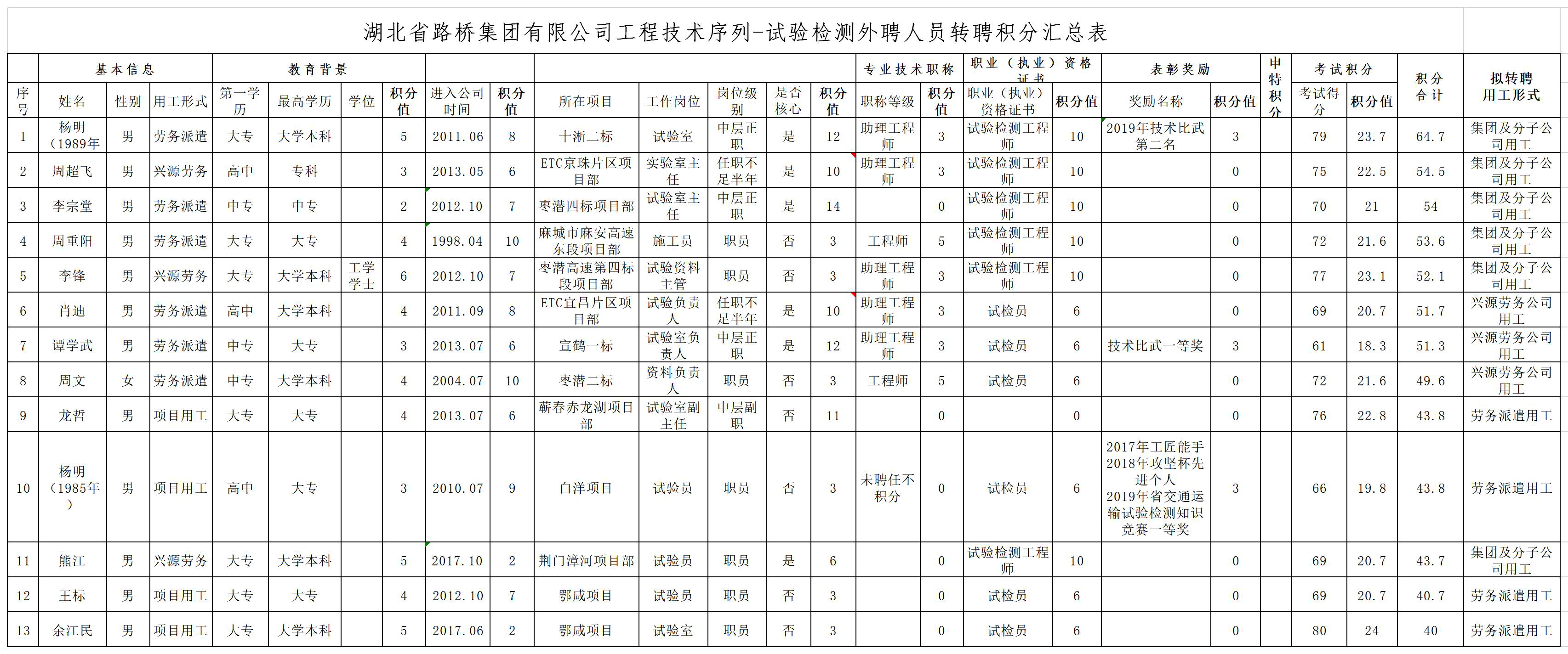 湖北省路橋集團(tuán)有限公司2019年擬轉(zhuǎn)聘人員公示