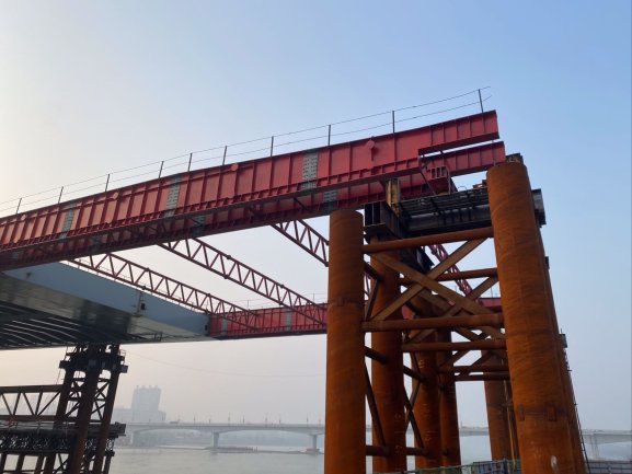 依托丹江口市水都二橋工程,研發(fā)了大噸位龍門吊與鋼梁拼裝平臺(tái)共用支架技術(shù)、大跨徑大斷面鋼箱梁拼裝線性變形控制技術(shù)及鋼箱梁節(jié)段精準(zhǔn)對(duì)接補(bǔ)強(qiáng)連接技術(shù),解決了龍門吊支架與鋼梁拼裝平臺(tái)支架交叉混亂、龍門吊軌道場(chǎng)地要求高的難題,提高了鋼箱梁節(jié)段對(duì)接安裝精度和連接強(qiáng)度,在有效工期內(nèi)完成了各項(xiàng)指標(biāo),獲得社會(huì)各方的高度好評(píng)。