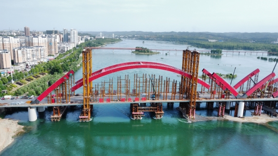依托丹江口市水都二橋工程,研發(fā)了一種拱肋原位支架快速安拆技術(shù)、拱肋吊裝高空精確調(diào)整定位技術(shù)、多因素影響鋼箱拱肋溫差變形預(yù)測(cè)技術(shù),提出了中跨拱肋低位拼裝同步提升合龍技術(shù),研制了液壓動(dòng)力系統(tǒng)提升裝置,采用了視覺位移監(jiān)測(cè)系統(tǒng),提高了拱肋原位支架安拆效率,全方位確保拱肋提升質(zhì)量與安全。